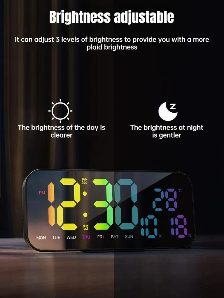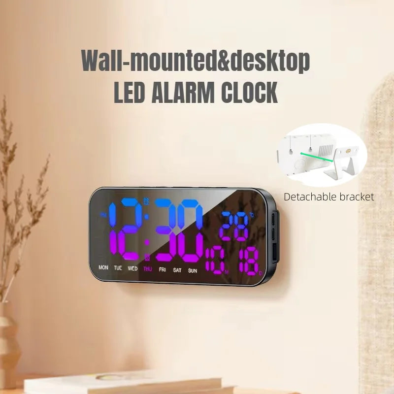 Le mode changement de couleur dynamique et les effets dégradés du réveil écran LED RGB multicolore créent une atmosphère moderne. Vous pouvez également le placer au mur grâce à son attache murale intégrée.