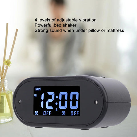 Le réveil gros dormeur propose 4 niveaux de vibrations et 4 niveaux sonores réglables, ainsi que 3 modes de programmation de jours (tous les jours, du lundi au vendredi, ou uniquement le week-end) et 2 alarmes programmables simultanément. Vous pouvez ainsi personnaliser votre réveil en fonction de votre emploi du temps et de vos besoins.