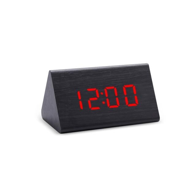 Un style minimaliste avec une coque en bois de couleur noir, une petite taille, un beau design triangulaire et un affichage LED coloré.